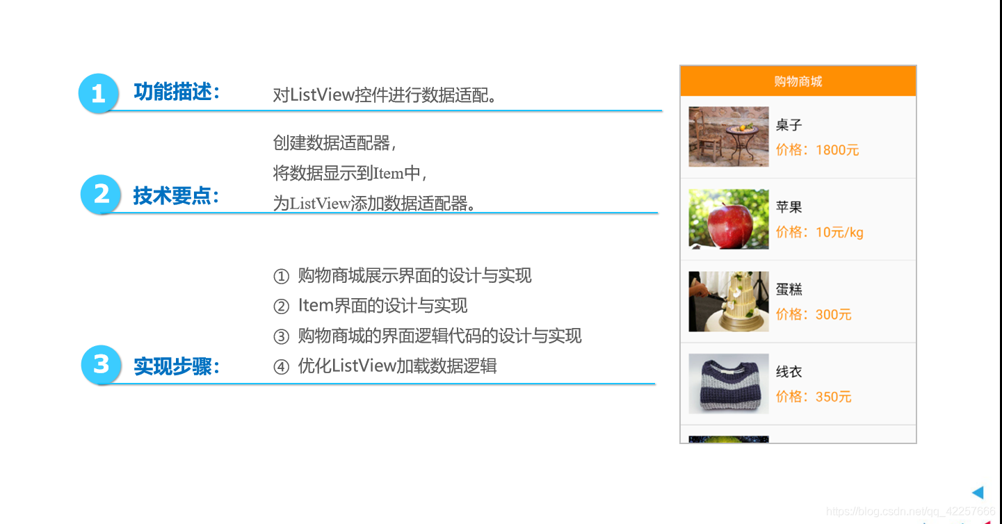 那么这些购物平台是如何显示这些商品列表的呢?当我们去浏览商品列表时这些信息是怎么添加上去的呢?带着这些疑问,本次项目就带大家来学习ListView的使用。