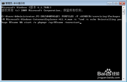 卸载IE9输入 FORFILES /P %WINDIR%servicingPackages /M Microsoft-Windows-InternetExplorer-*9.*.mum /c "cmd /c echo Uninstalling package @fname && start /w pkgmgr /up:@fname /quiet /norestart